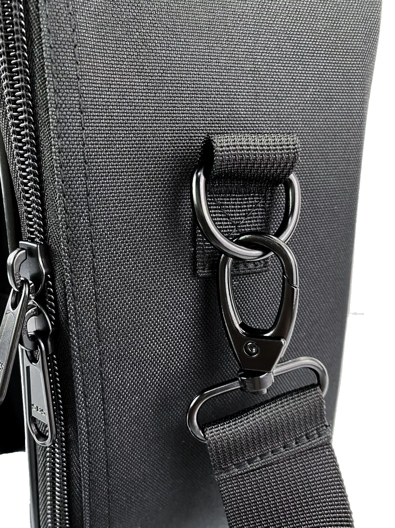 - Removable, adjustable carry strap with metal snap hook